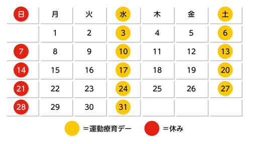 1)水曜日と土曜日を終日「運動療育デー」として運用
